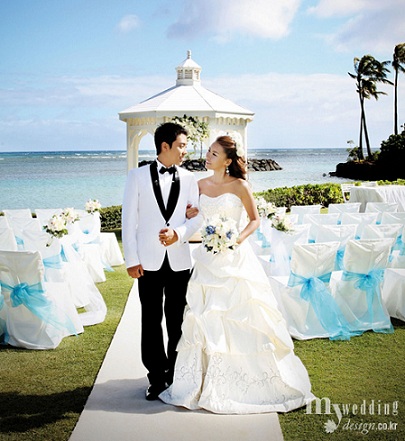 這張是比較常見的新聞圖婚紗照。長年在夏威夷的老婆,明明是韓國人也好像外國人喔~