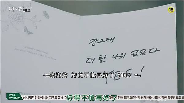 得到吳次長的第一張聖誕卡,寫著「張格萊,好到不能好了!YES!」。