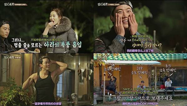 崔華靜還準備了大量的食物免得餓肚子。看著東西一項項掏出來,羅PD不得不出面解釋一下三時三餐的宗旨。XD