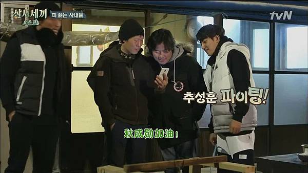 (一群男人湊在手機前面一起看秋成勛的比賽XD)