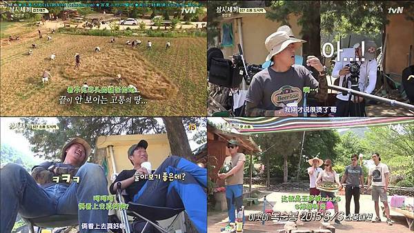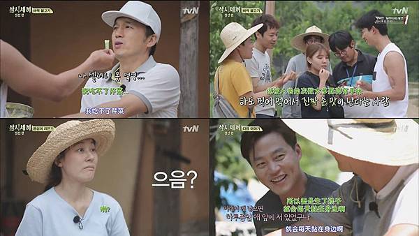 劉海鎮從漁村篇來到農村,感覺起來也適應得很好。邊洗碗邊看著羅PD跟玉澤演、金光奎一起認真討論雜草的處置,也覺得很有趣。製作組很強連隔空「@#$*&#」的交談都後製的很好笑阿!XDDD