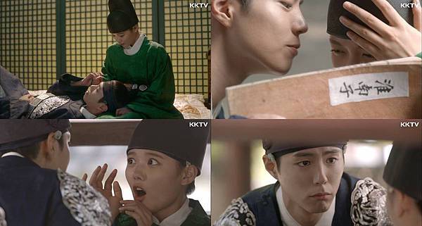 而隔天醒來的羅溫當然很慌張,想著要怎麼不被人發現溜出去,但看見李韺的睡顏時卻忘記自己的處境而看呆了。