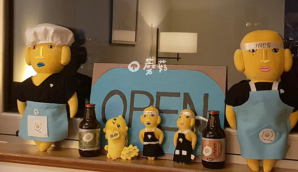 (照片中OPEN是帕尼畫的,酒標是Pinky設計的,蘑菇親手做了妙漢的圍裙,對我什麼都沒做XD)